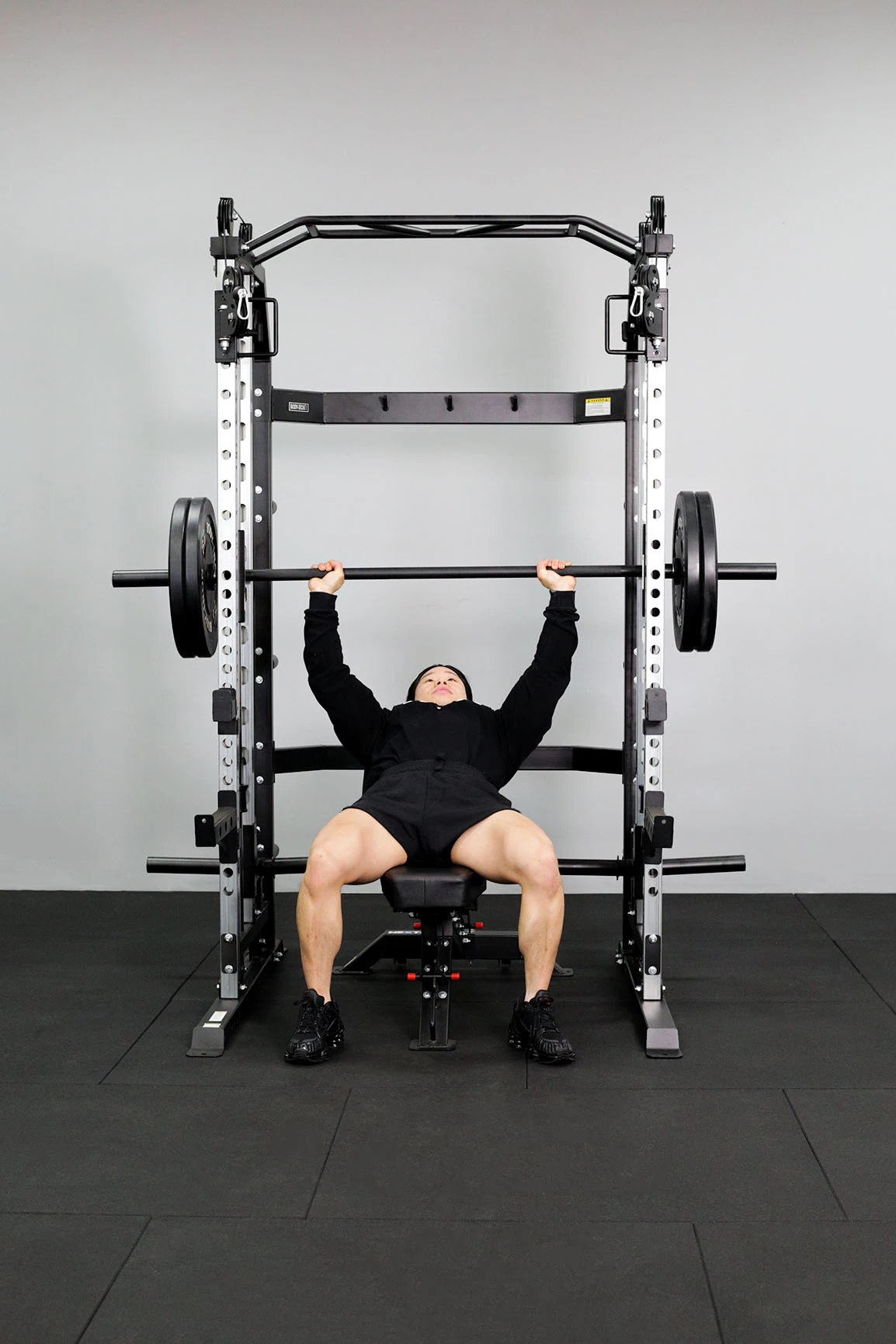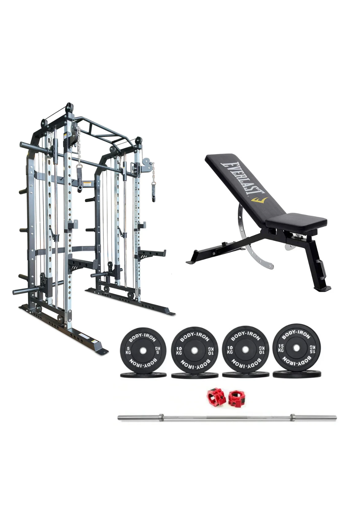 Body Iron All-In-One Functional Trainer FTG30 + Adjustable Bench + 120kg Olympic Barbell & Bumper Plate Set