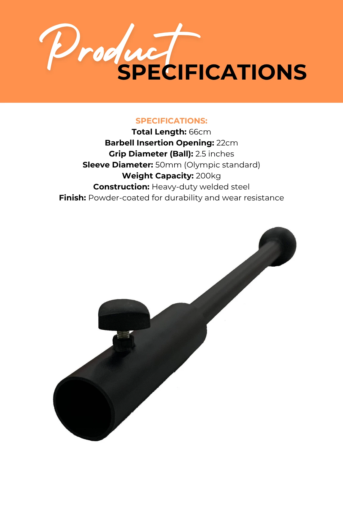 - 50mm Sleeve: this attachment is compatible with any Olympic sized barbell.