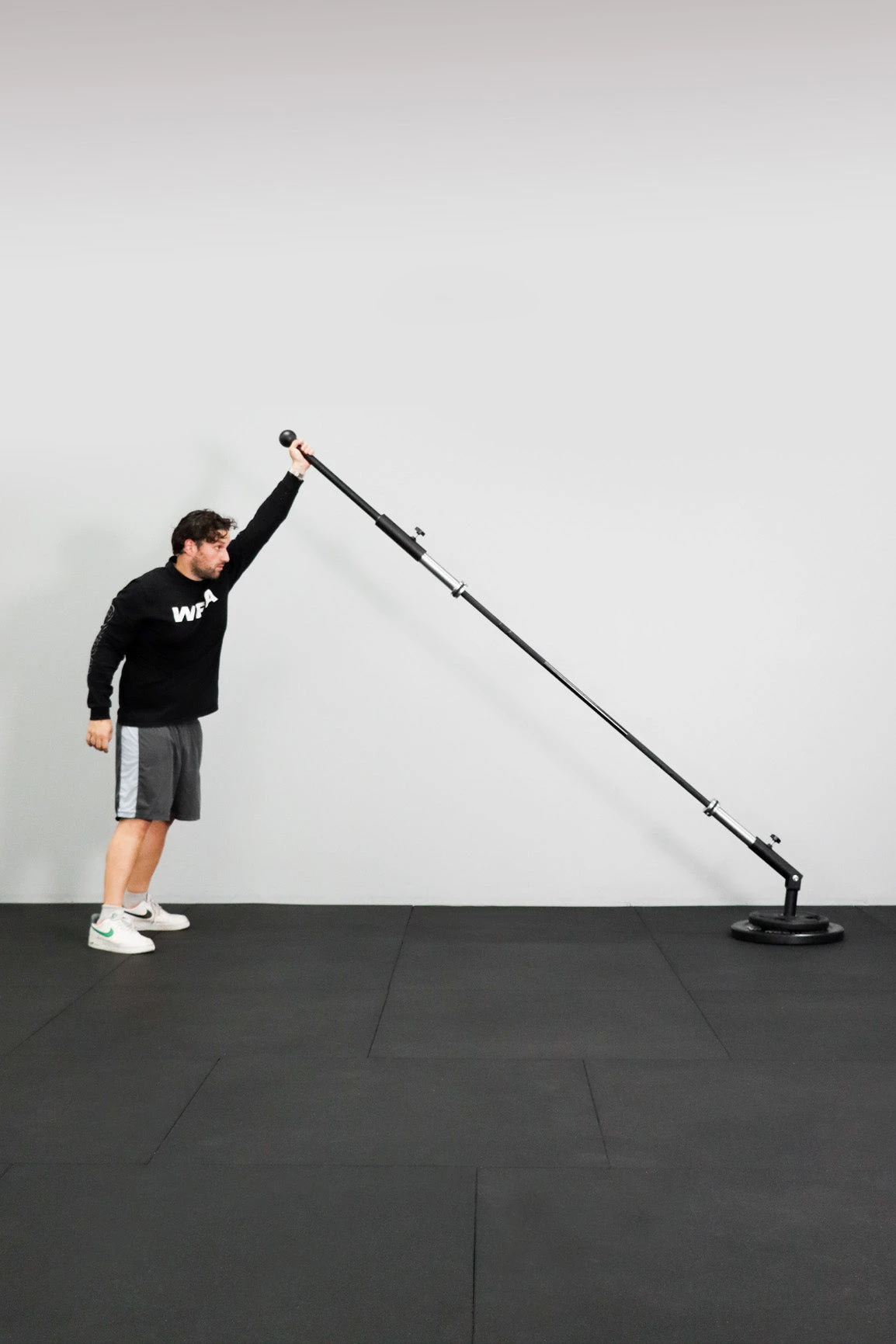 To use the ball grip attachment correctly you first need to secure your barbell into the landmine attachment. Then, add your weight to the other end of the of the bar before securing the ball grip against the weight plates.