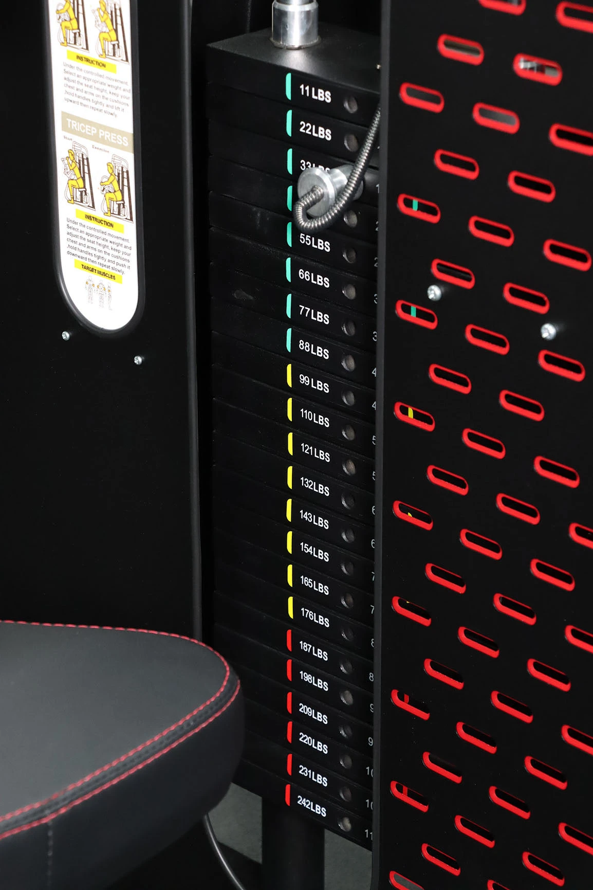 Weight stacks have been fitted with magnetic weight pins.
