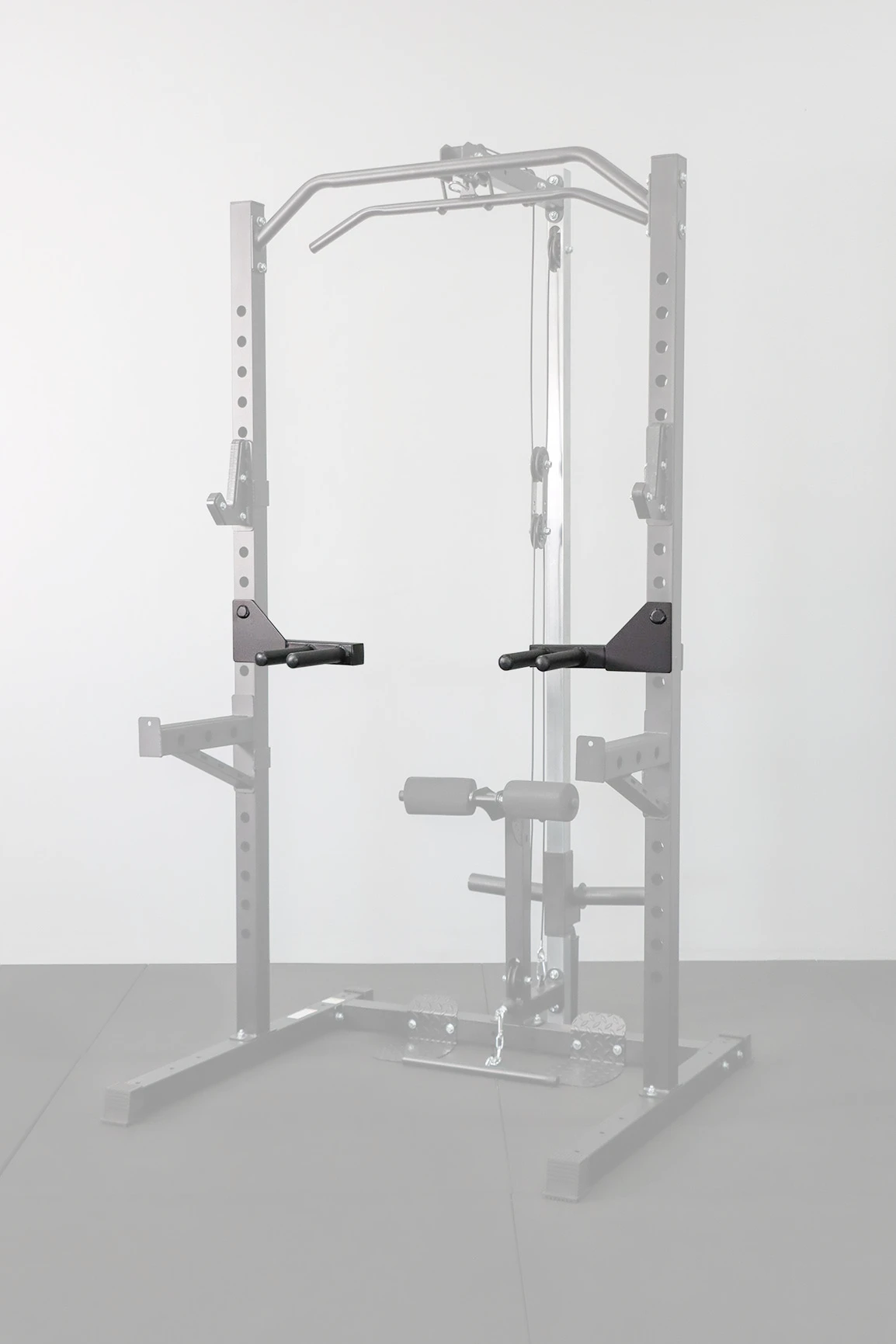 Utilising a pin and hole system, this dip attachment can be easily adjusted and/or removed.