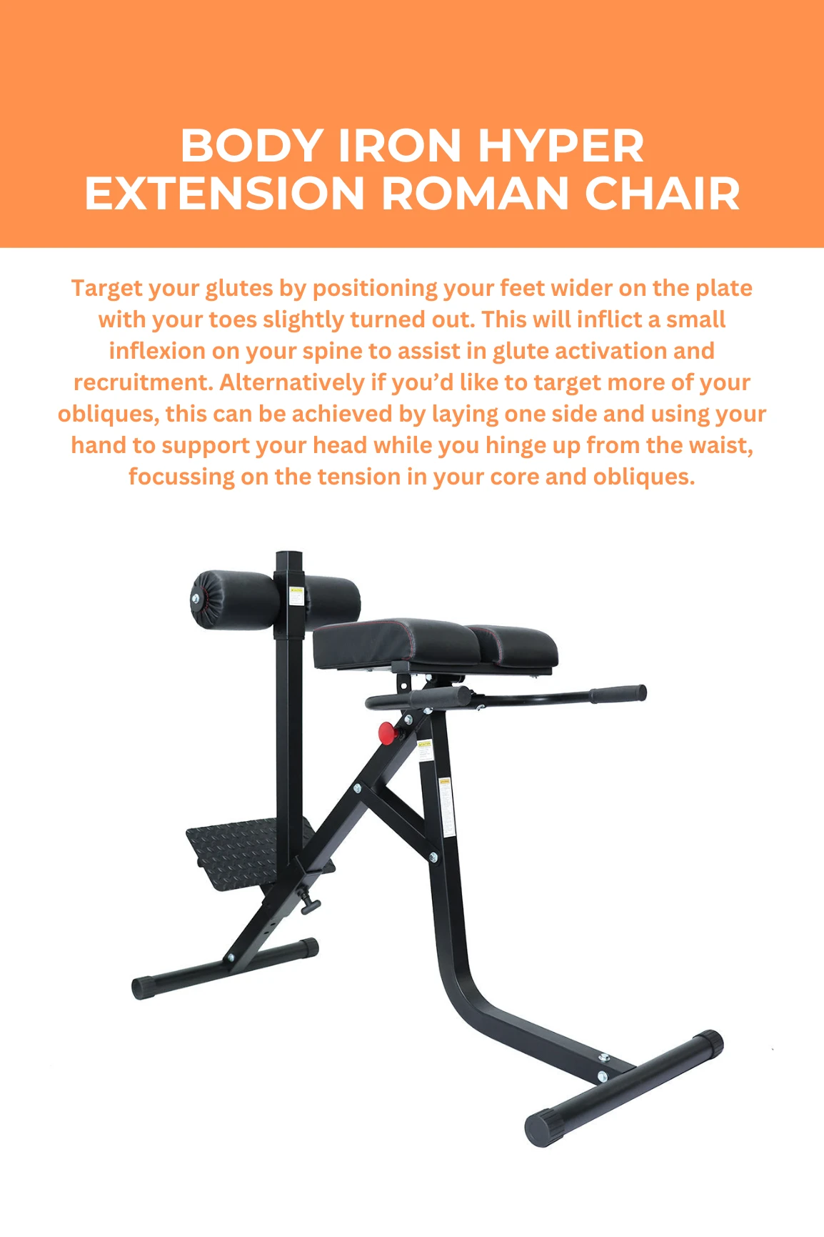 The Body Iron Hyper Extension Roman Chair is a must have piece of equipment if you’re looking to elevate your core strength. It targets muscles in both your anterior and posterior chain while helping develop strength in your entire body, particularly your abdominals, obliques, lower back and glutes.