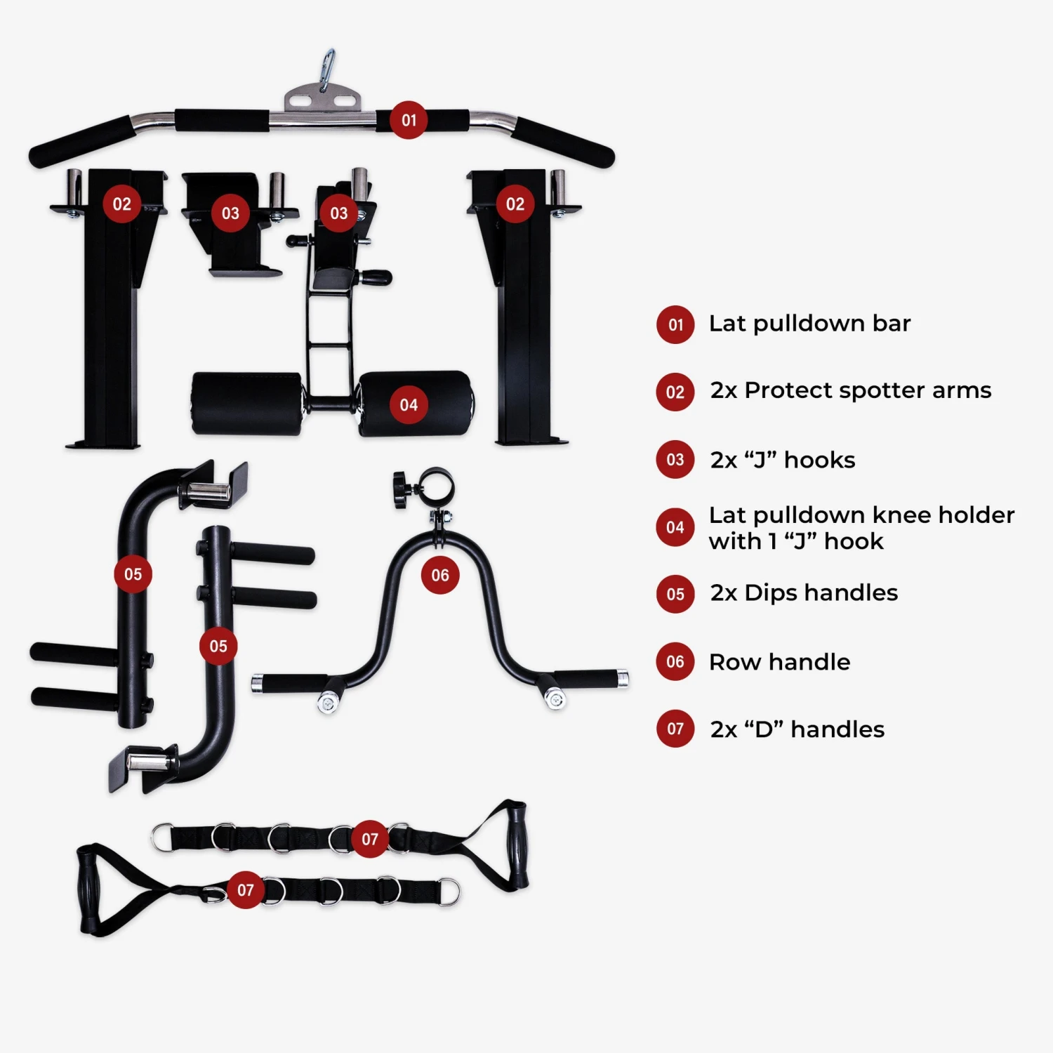 - J-Hooks & Safety Spotter Arms: Rated to 272kg