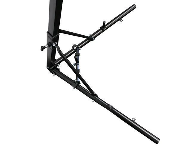 The stand is also equipped with three stabilising pegs to improve the stability of the construction. Place standard weight plates on each stabilizing pegs (weights not included). We recommend having 30KG on each stabilising peg. Pegs can hold plate size up to 10Kg of the standard weight plates size. Stabilising pegs can take 27.5mm – 32mm Standard Weight Plates. You can also use Olympic weight plates. But they will be loose on the stabilizing pegs. Sand bags can also be used.