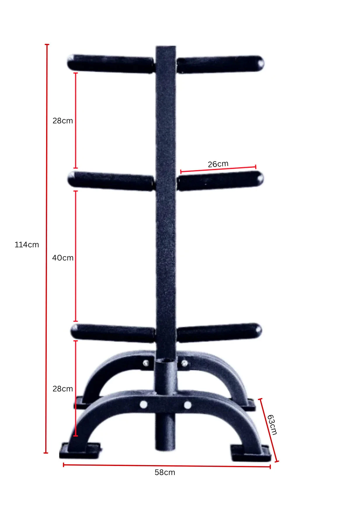 Weight Plate Pegs:Â 26cm (L), compatible with Olympic weight plates.