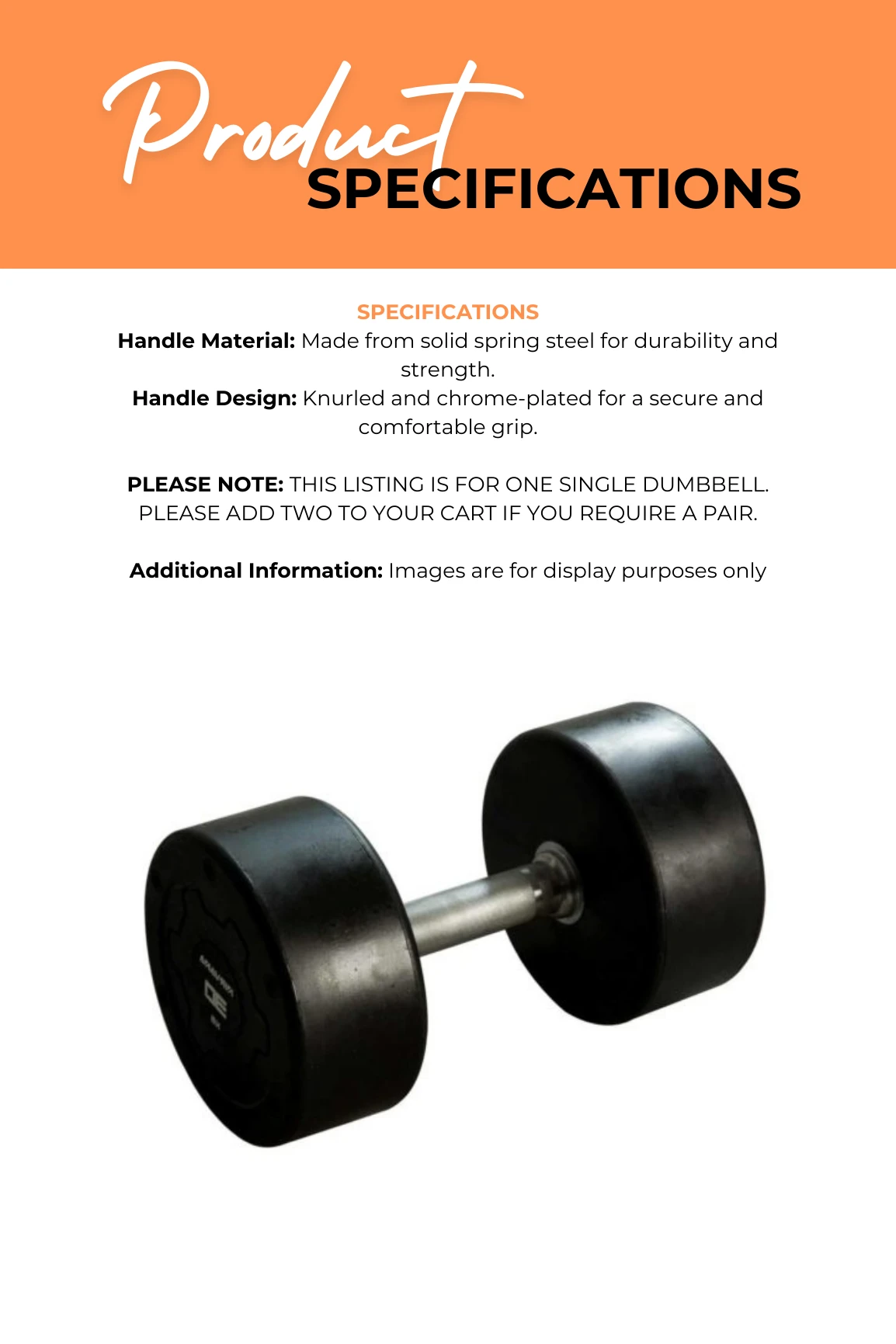 This listing is for one single dumbbell – Please add two to your cart for a pair