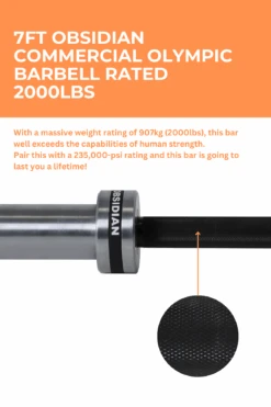 Body Iron 7ft Obsidian Commercial Olympic Barbell Rated 2000lbs