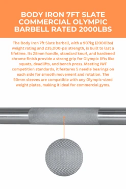 Body Iron 7ft Slate Commercial Olympic Barbell Rated 2000lbs