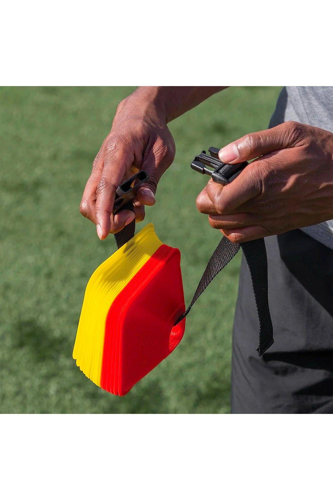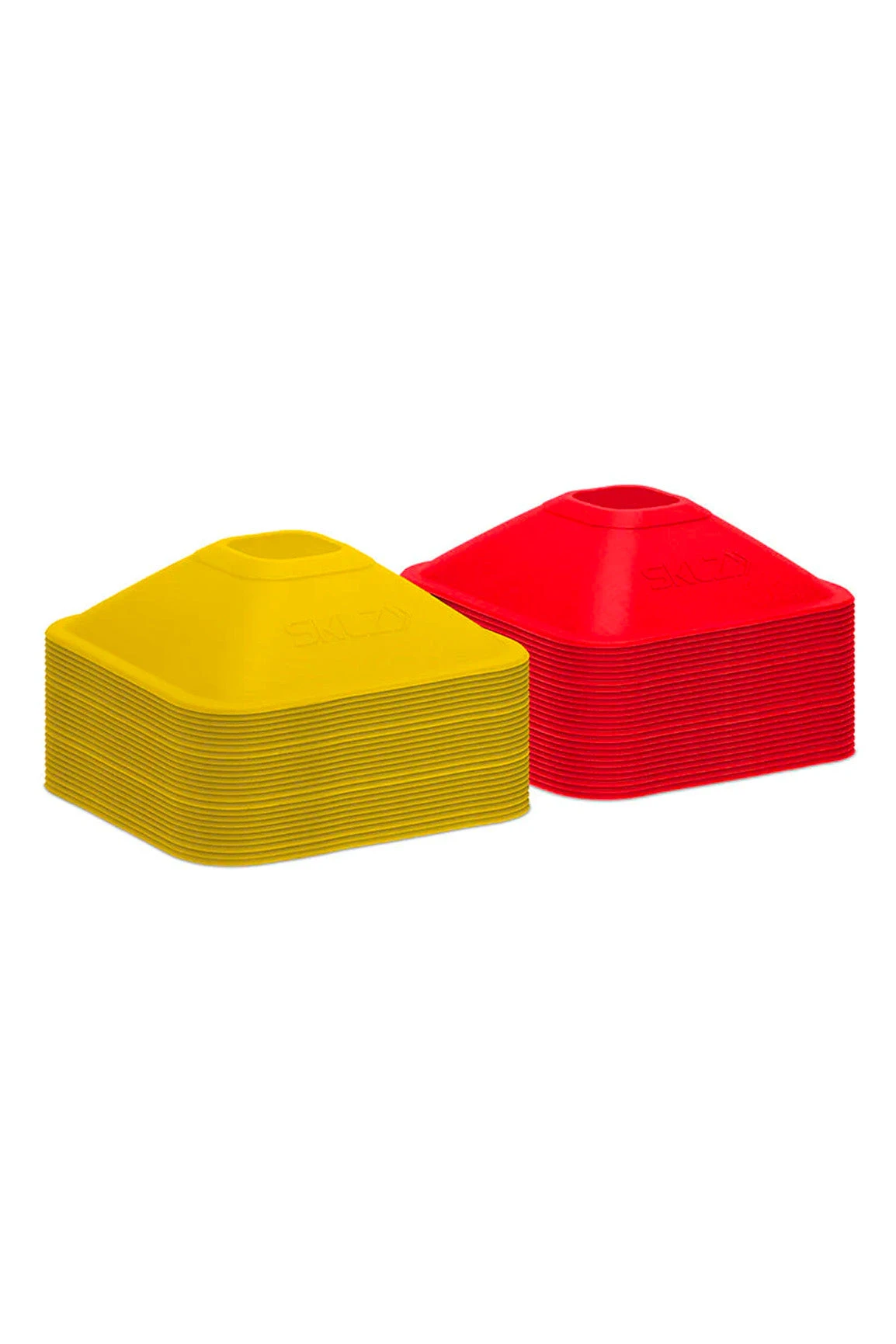 Mini Cones are engineered with a square base for better balance, making them the ideal training aid for a variety of sports and for players of all ages and skill levels. These high-visibility cones can be used for marking training areas, setting up drills and skill exercises, fields, and courts. Constructed for use on a variety of surfaces, the cones can be used on turf, courts, grass, and much more. Designed with durable materials, SKLZ Mini Cones are built to withstand rigorous training sessions, season after season. A carry strap is included for easy transport and storage. The set of 50, 2” high-visibility cones features two colors, 25 yellow and 25 red.